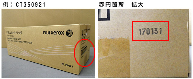 富士ゼロックス製品は、主にラベルシールや箱への印字、スタンプによって、「推奨使用期限」または